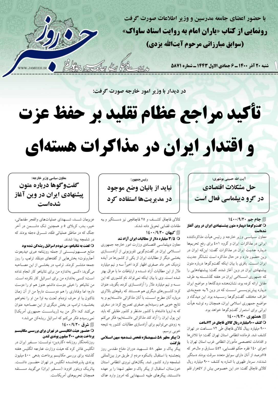 خانه » نشریه » نشریه خبر روز » خبر روز ۱۴۰۰/۰۹/۲۰