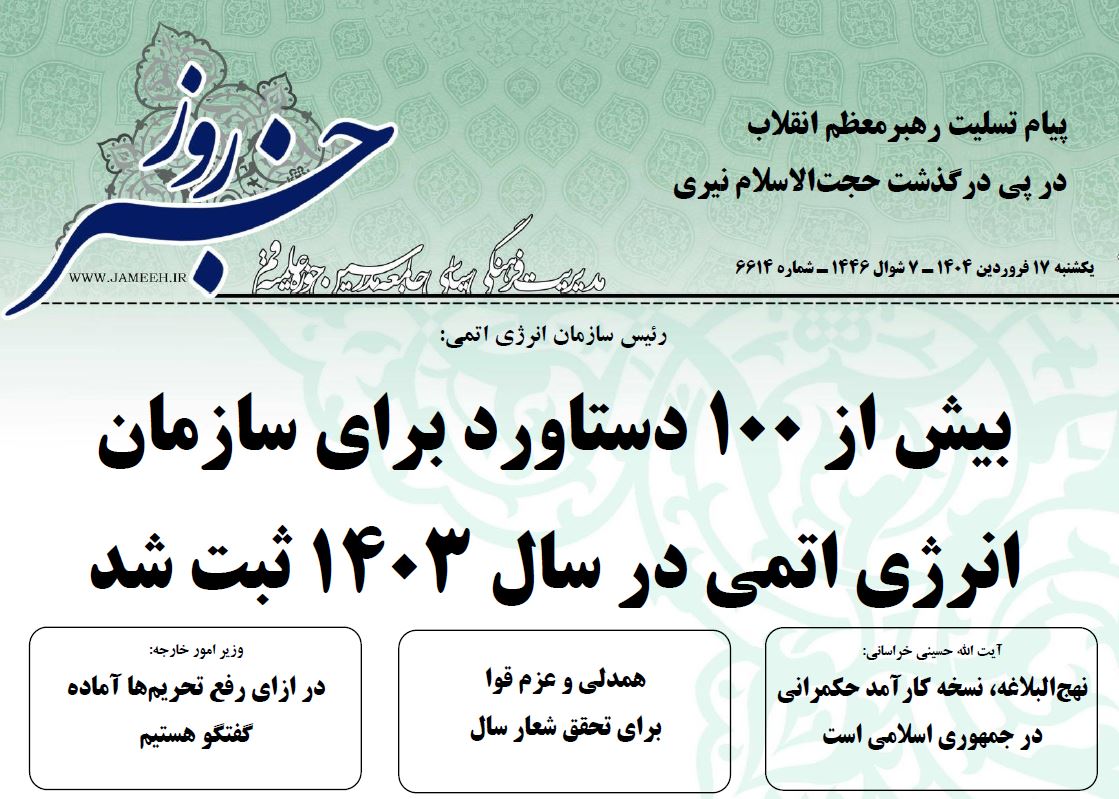 خانه » نشریه » نشریه خبر روز » خبر روز ۱۴۰۴/۰۱/۱۷