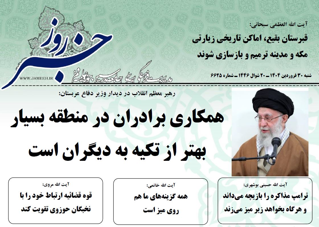 خانه » نشریه » نشریه خبر روز » خبر روز ۱۴۰۴/۰۱/۳۰