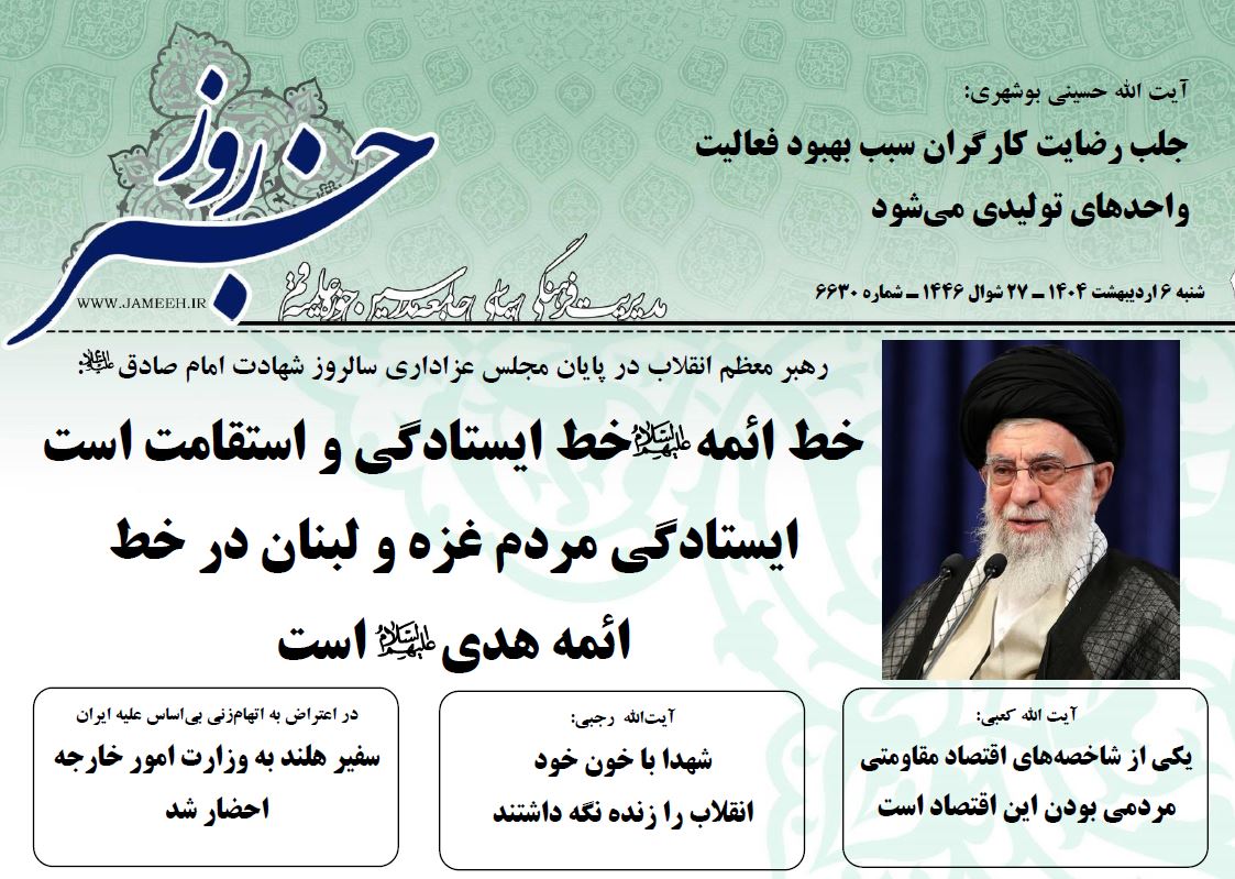 خانه » نشریه » نشریه خبر روز » خبر روز ۱۴۰۴/۰۲/۶