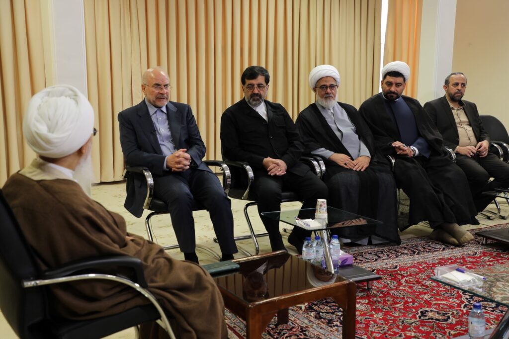 به گزارش روابط عمومی جامعه مدرسین حوزه علمیه قم، محمدباقر قالیباف رئیس مجلس شورای اسلامی صبح پنجشنبه (۱۰ مهر ۱۴۰۴) با حضور در بیت آیتاللهالعظمی جوادی آملی در قم، با وی دیدار و گفتوگو کرد.