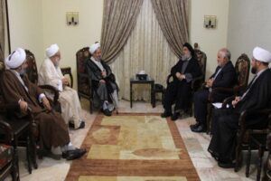 هیئتی از جامعه مدرسین حوزه علمیه قم به ریاست آیتالله مقتدایی نائب رئیس شورای عالی جامعه مدرسین، برای ابلاغ سلام و تقدیم پیام حمایت و تقدیر و تشکر جامعه مدرسین حوزه علمیه از حزب الله لبنان